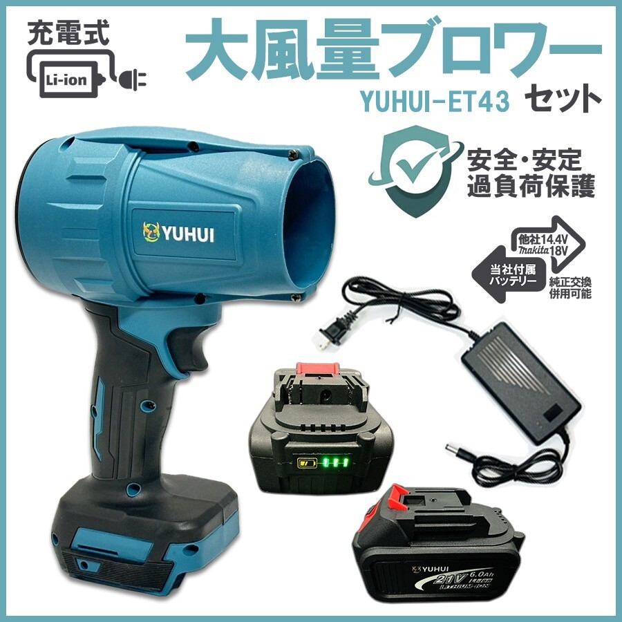 > ★送料無料 30日間保証付き★最強 ブロワー 超強力 ターボ マキタバッテリー 対応 充電式 18V 6Ah 暴風ブロワー PSE認証バッテリー2個付き