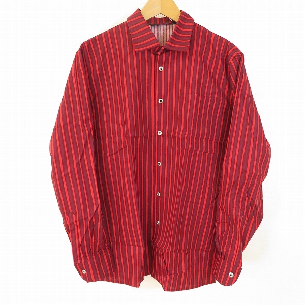 - #a マリメッコ marimekko ヨカポイカ Jokapoika シャツ ブラウス S 赤 赤紫 ストライプ タグ付き 美品 オーバーサイズ 男女兼用 929136 k01