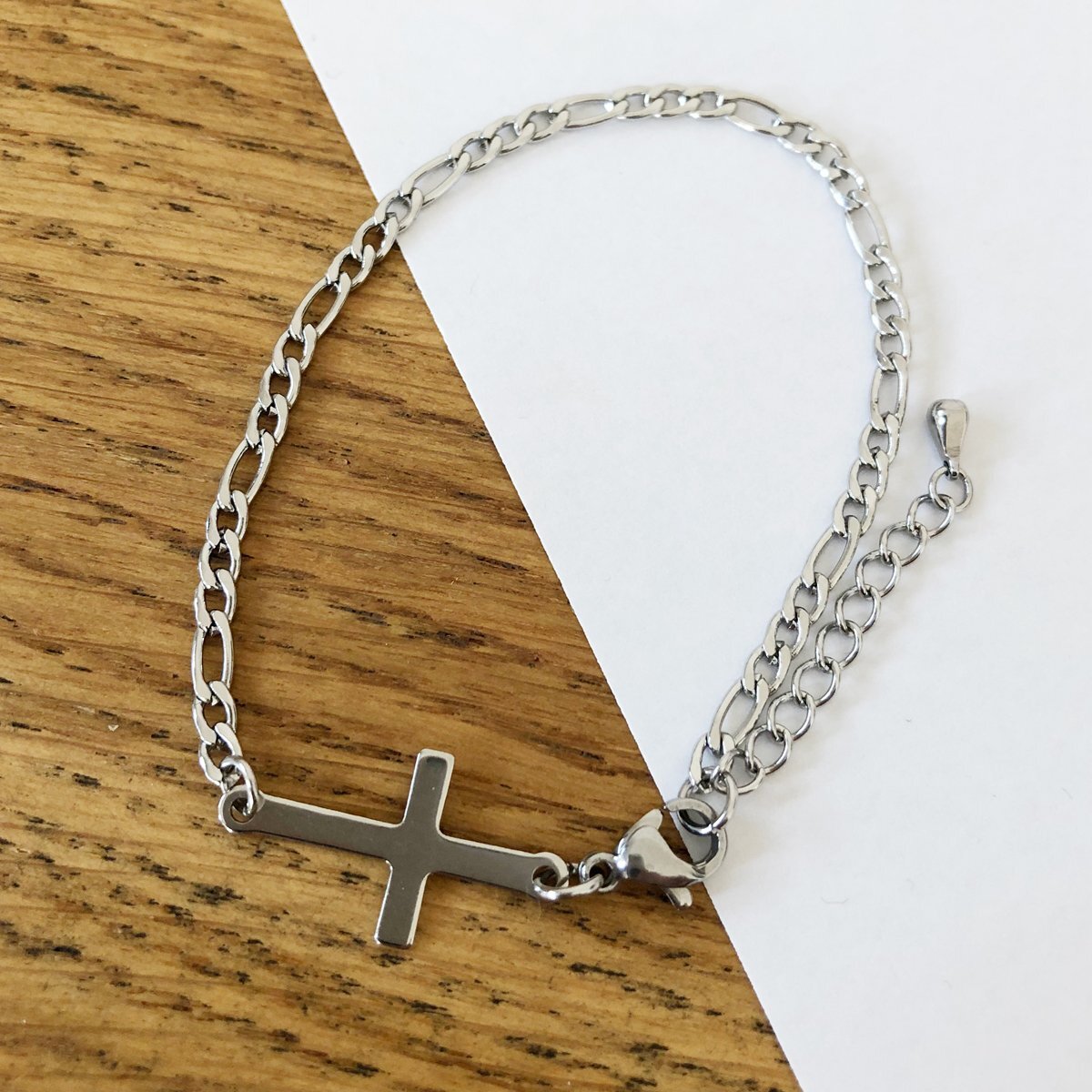 - ステンレスブレスレット 十字架 クロスチャームブレスレット 約21cm(18+3cmアジャスター) SAC04