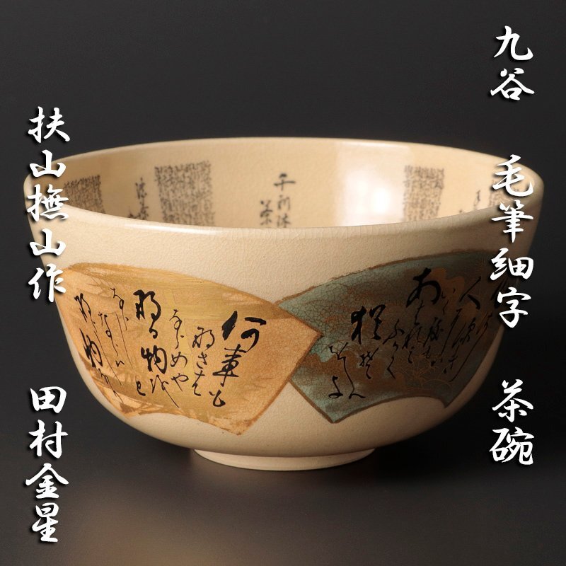 > 【古美味】九谷 扶山撫山作 田村金星字 毛筆細字 茶碗 茶道具 保証品 3ZfM