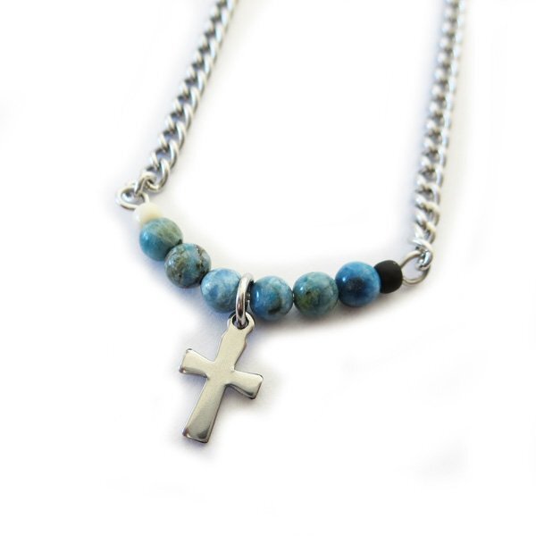 - ステンレス アパタイト ミニクロスネックレス 全長約45cm BN46
