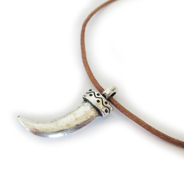 - 革紐ネックレス 牙チャーム付き 長さ約45cm(40cm+5cm) LNG04