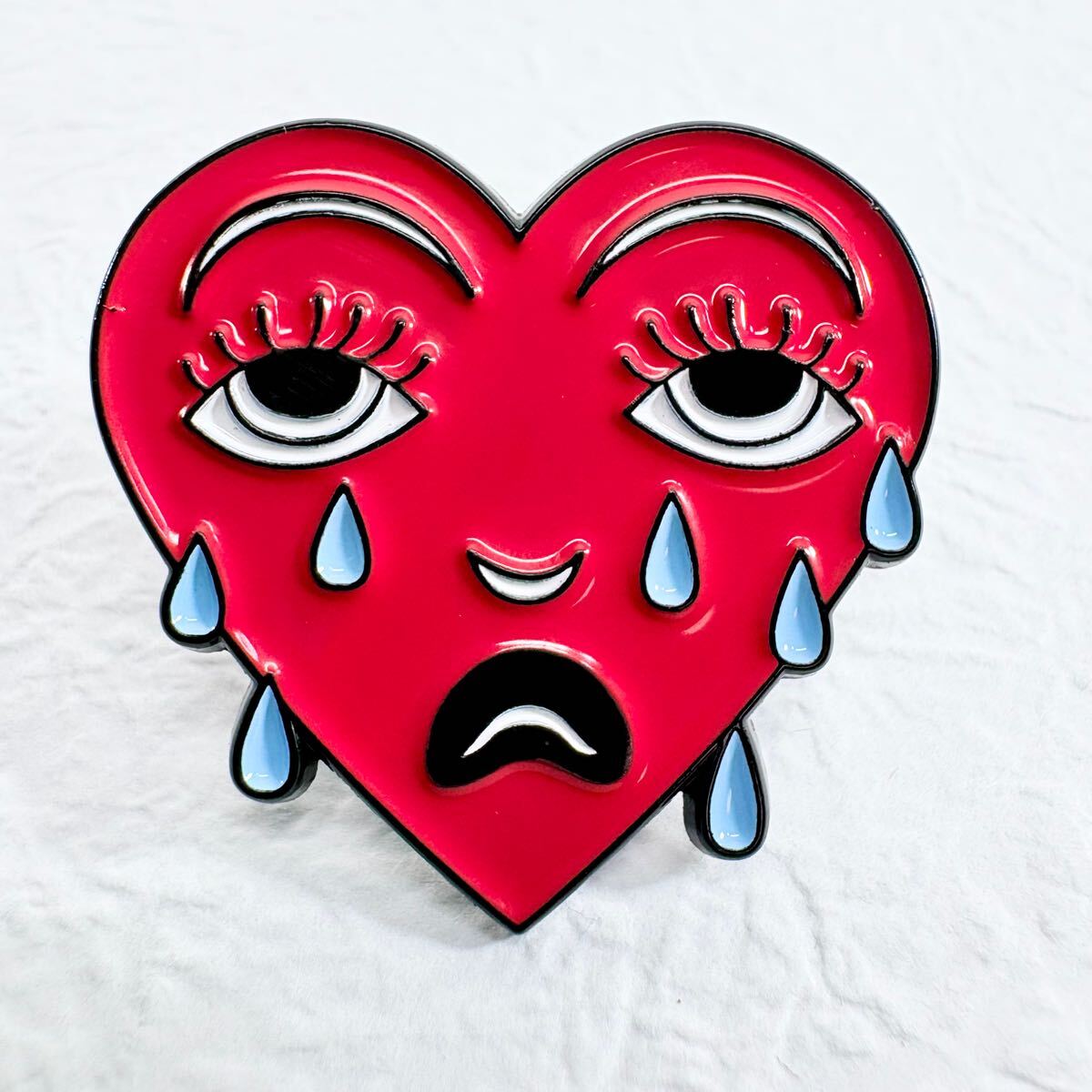 - 【ピンバッジ】涙を流すハート 泣き虫 泣き顔
