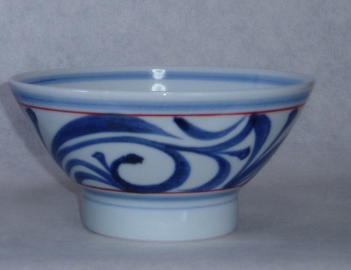 - 砥部焼「お茶漬碗(赤線唐草)5寸」1ツ