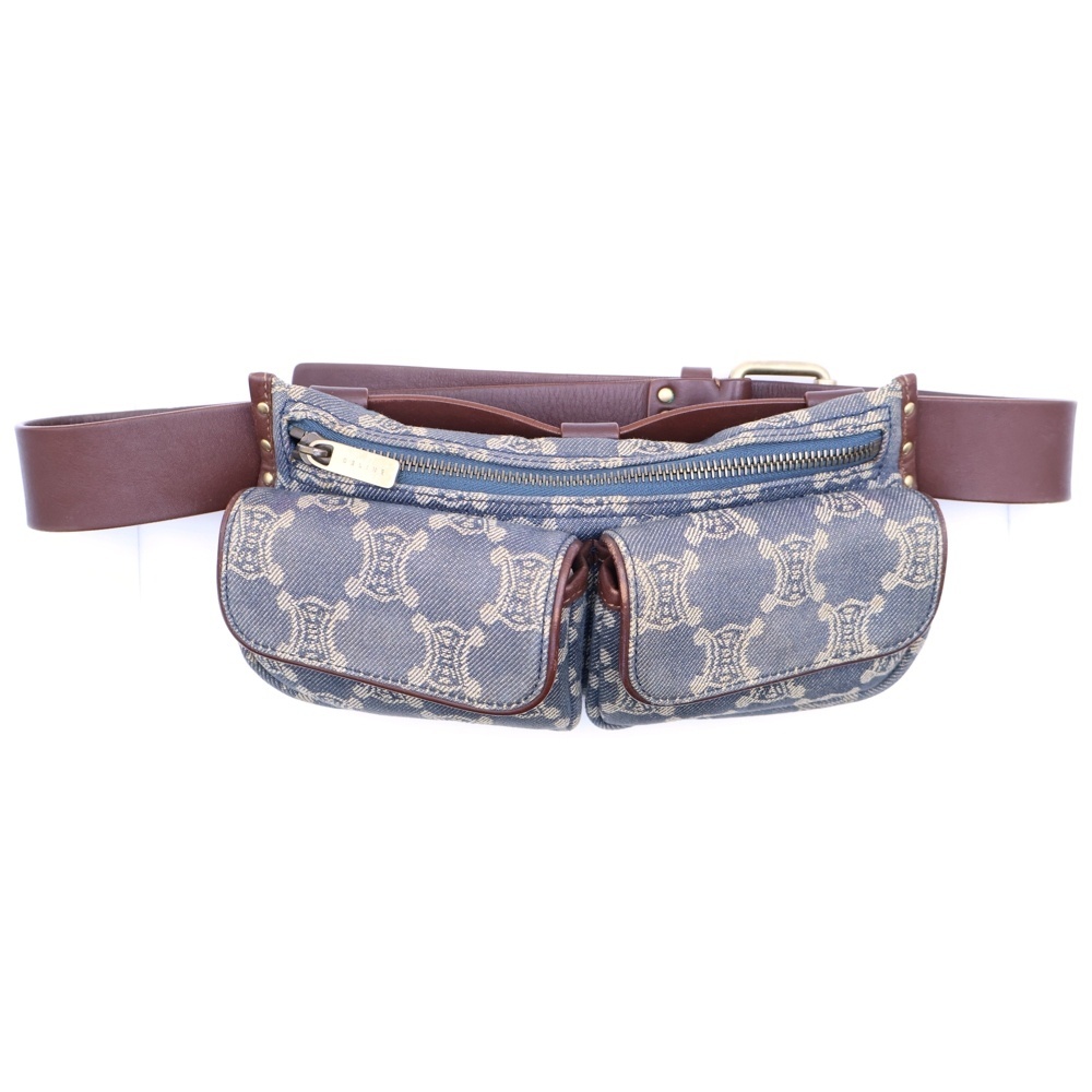 > CELINE セリーヌ マカダム ウエストバッグ ボディバッグ ショルダーバッグ インディゴブルー×ブラウン キャンバス×レザー デニム