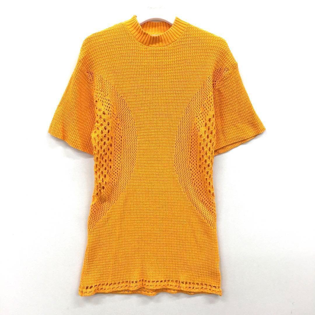 - H&M エイチ&エム ハイネック透かし編みニットワンピース オレンジ