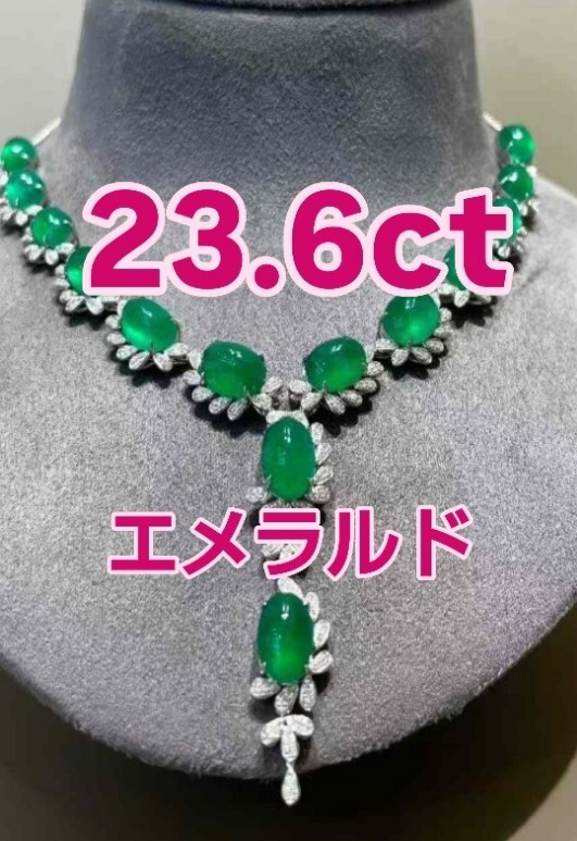 - 23.6ctヴィヴィッドグリーン エメラルド シュガーローフ ネックレスセット 「緑の絢爛―― 23.6カラットが奏でる、至上の輝き。」