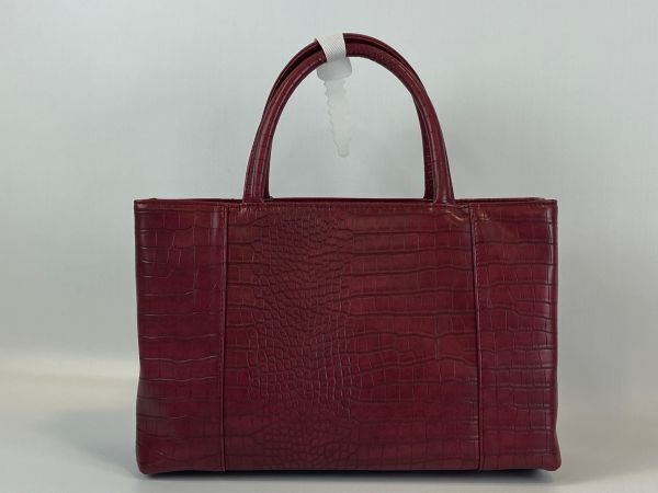 - ▼三作▼新品 クロコダイル調 手提げバッグ ワイン