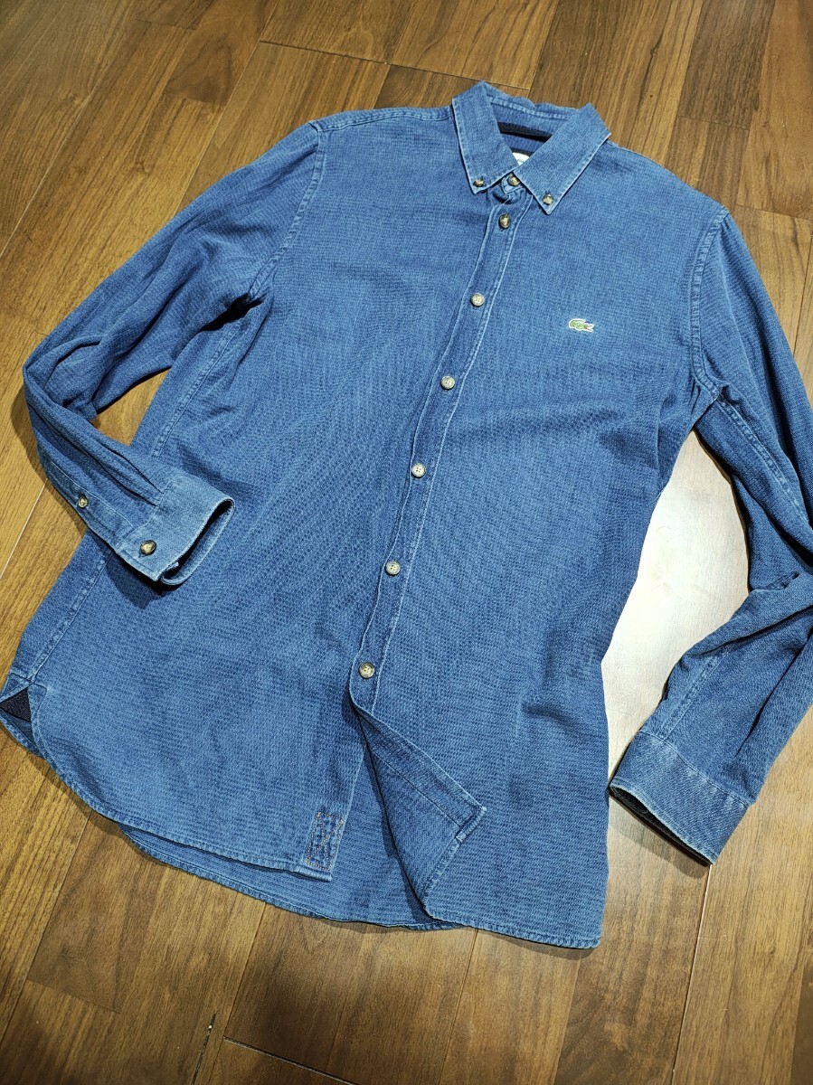 - LACOSTE REGULAR FIT ラコステ 長袖デニムシャツ サイズFR38 USサイズS ラコステジャパン インディゴUSED加工 マチ付き made in turkey