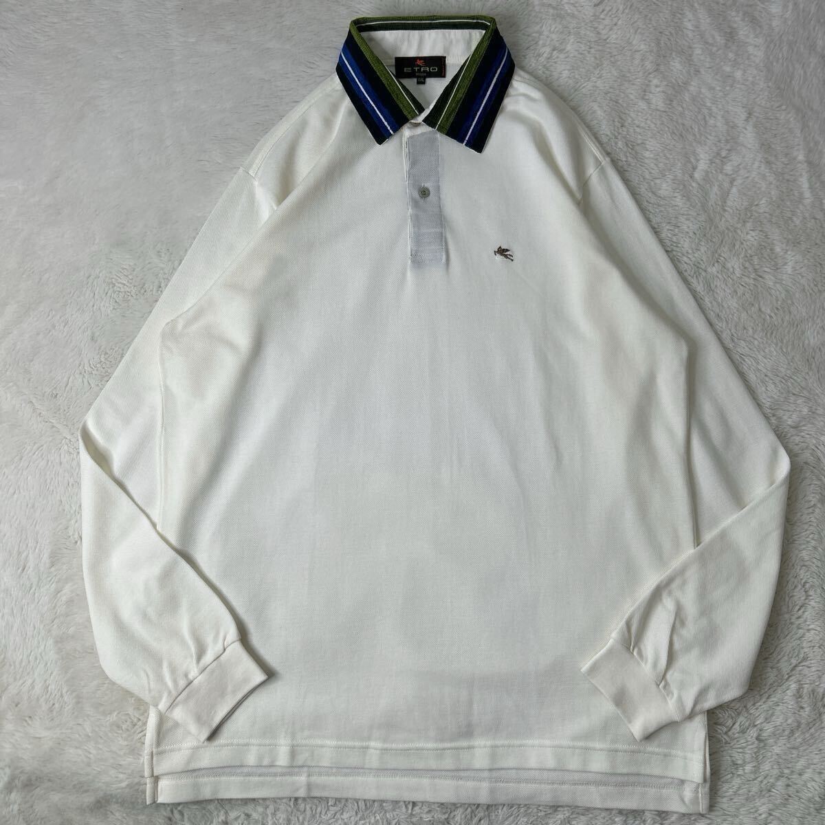 > [希少サイズ XXL] ETRO/エトロ 長袖ポロシャツ/鹿子 オーバーサイズ/襟マルチカラー ロゴ刺繍 オフホワイト