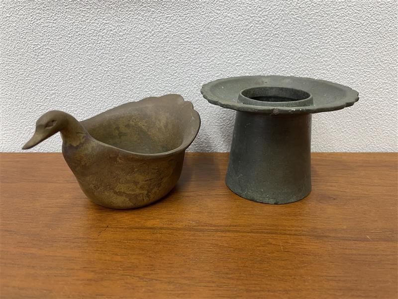 - #9640 カモ型入れ物&燭台セット 真鍮・青銅未確認 骨董品/アンティーク/コレクション