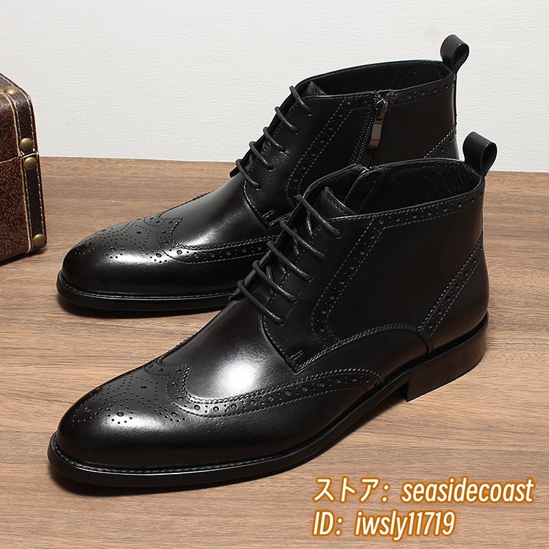 > 最高級◆マーティンブーツ メンズ イギリス風 ショートブーツ 本革 職人手作り 彫り レザーブーツ 作業靴 高級牛革 新品 ブラック 27.0cm