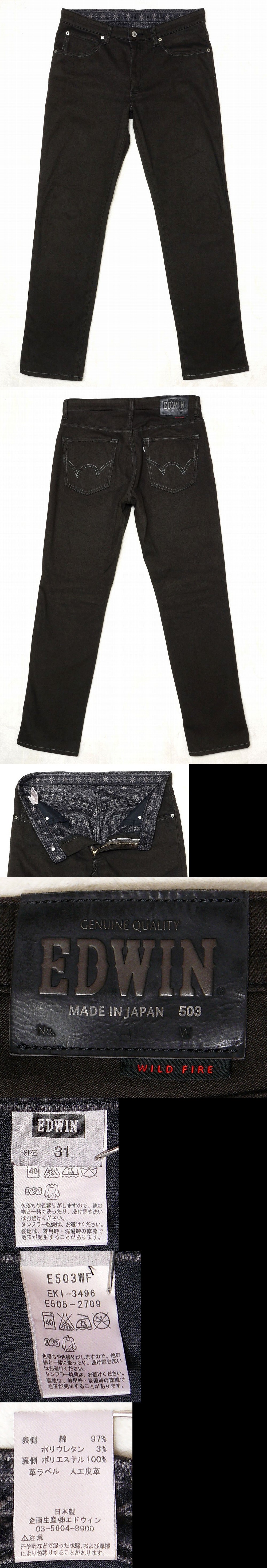 - 裏起毛 エドウィン 503 ワイルドファイア E503WF ダークブラウン ストレッチストレート メンズデニムパンツW31 実寸W85センチ 股下79センチ