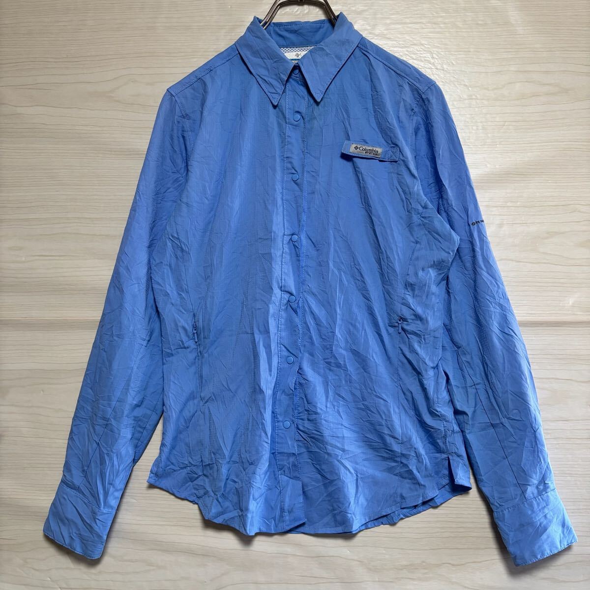 - columbia コロンビア 長袖シャツ ボタンダウン ドットボタン サイズXS ライトブルー 水色 ポリエステル レディース トップス(36)