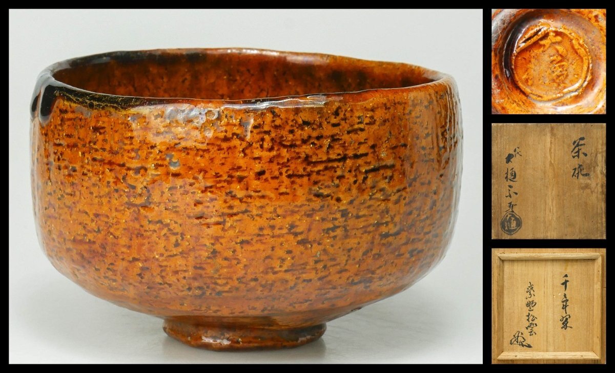 - 【 幸 茶匠の蔵 】秀作!『八代大樋長左衛門(宗春)』造 飴 茶碗 銘「千年翠」大徳寺管長 松雲箱 共箱◆当店保証 茶道具『茶人の言葉』