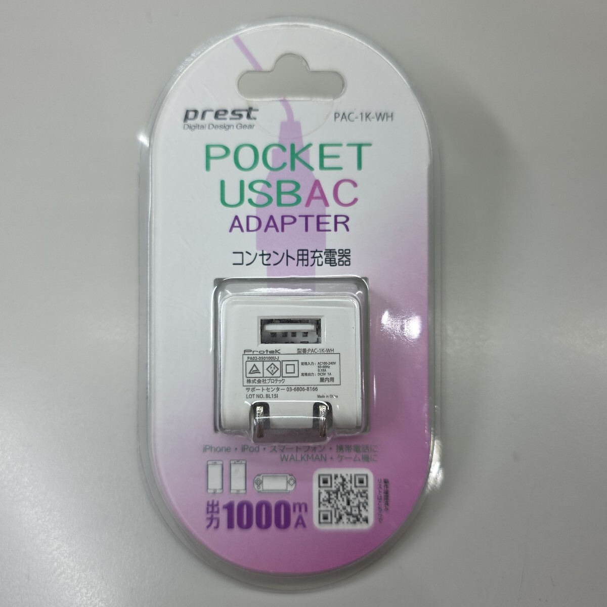 > プロテック Prest ポケットUSB ACアダプタ (コンセント用充電器) 1000mA PAC-1K-WH 新品・未使用