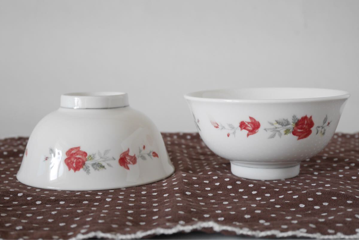 - レトロ台湾大同陶器 バラ柄小碗(2個セット)