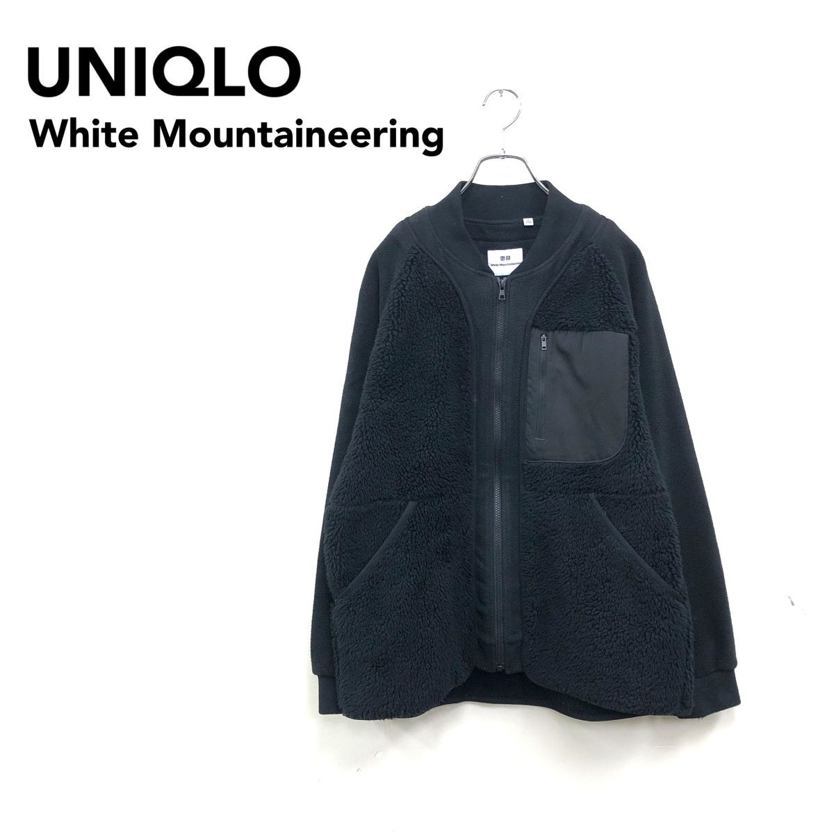 - 2O2081-Y◆UNIQLO ユニクロ White Mountaineering フリースオーバーサイズジャケット フルジップ 胸ポケット ボア ◆sizeM ブラック 綿