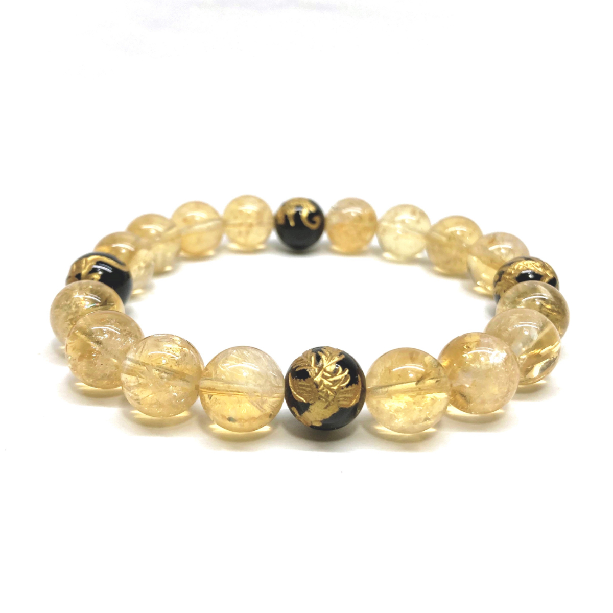 - 10mm 四神獣金彫オニキス×シトリン パワーストーン ブレスレット天然石 運気上昇 開運 幸運 恋愛運 青龍 白虎 玄武 朱雀 ☆