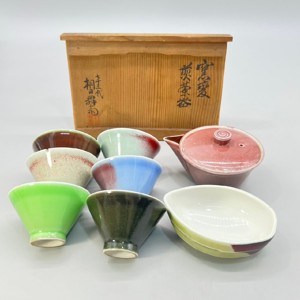 ●朝日窯 朝日昇斎 窯変 煎茶器 宝瓶 湯冷まし 煎茶碗 共箱 共布です。