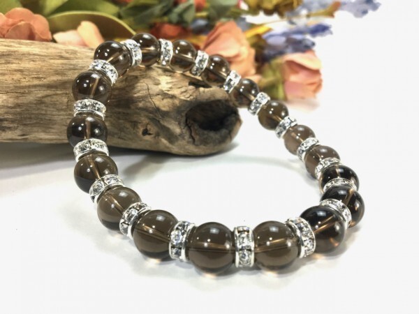 - スモーキークォーツ パワーストーン ブレスレット 天然石ブレス 10mm メンズ・レディース (シルバー) 浄化 数珠ブレス ☆