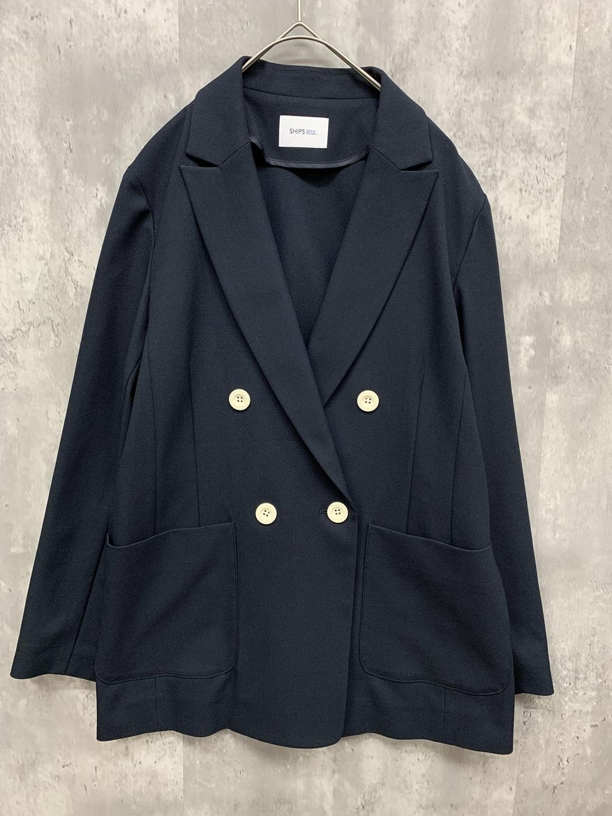 > ゆうパケットOK 美品 SHIPS シップス 727-01-0011 ライト ダブル ジャケット 洗濯機可能 テーラード ジャケット sizeF/ネイビー ■■◎