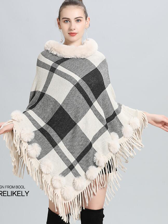- M1020 ポンチョレディース● 着心地抜群 20代30代40代 ● 防寒 ニット素材 フリンジ アイボリー