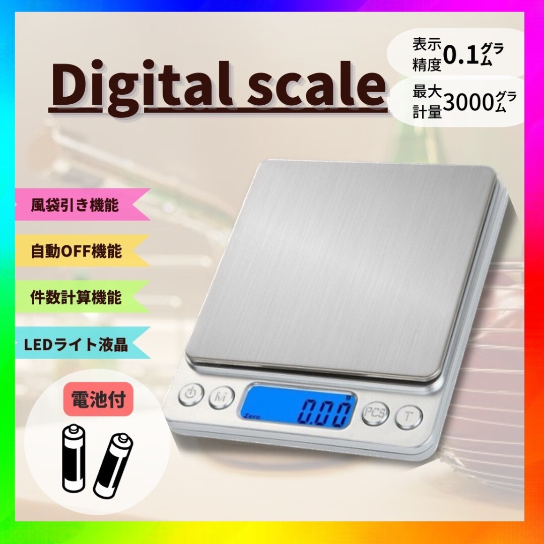 - キッチンスケール キッチン デジタル スケール 0.1g-3kg 計量器 測り 計り デジタル 秤量器 クッキング 電子 バック ライト 電池