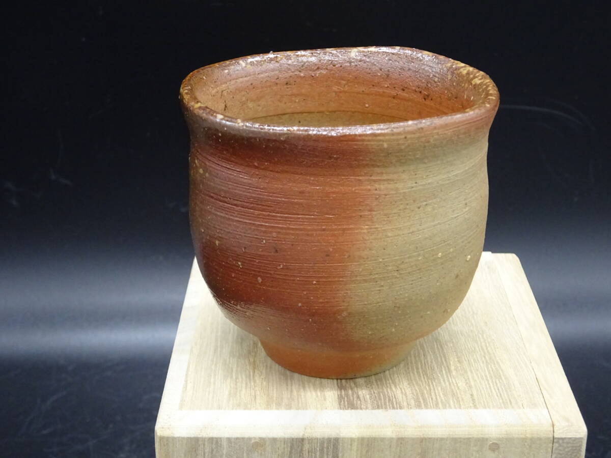 - 備前焼 人気実力作家 伊勢崎創(師:県重要無形文化財伊勢崎満)工芸会正会員★備前窯変ぐいのみ 共箱、共布、陶歴付 茶道具