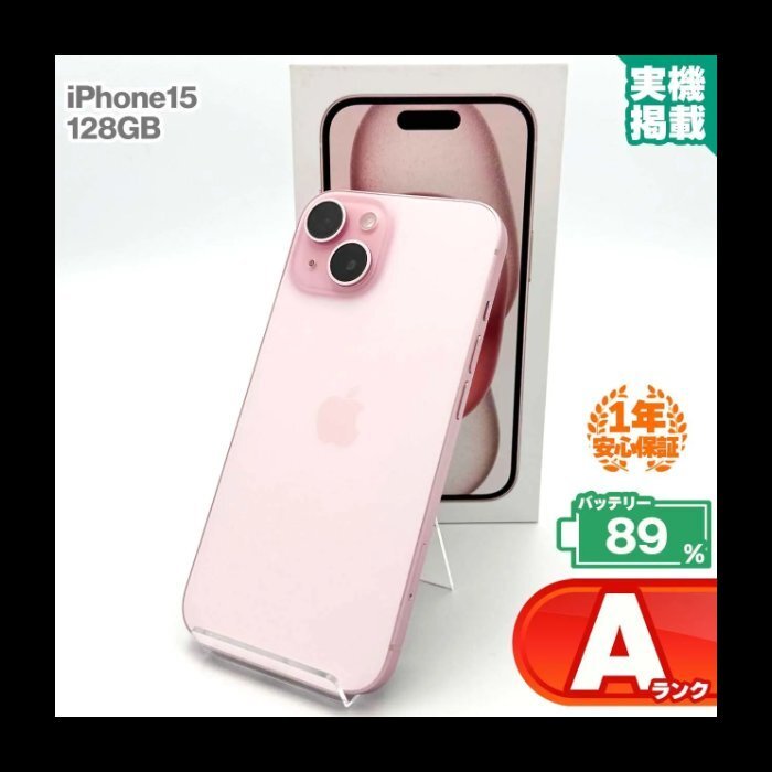 - 安心の1年保証 iPhone15 128GB ピンク 本体 中古 スマホ 中古スマホ 中古iPhone 中古Aランク バッテリー最大容量89% SIMフリー