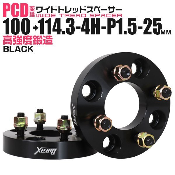 > Durax正規品 PCD変換 ワイドトレッドスペーサー 2枚セット 100→114.3-4H-P1.5-25mm 黒 4穴 PCD100mm-PCD114.3mm スペーサー 新品 未使用