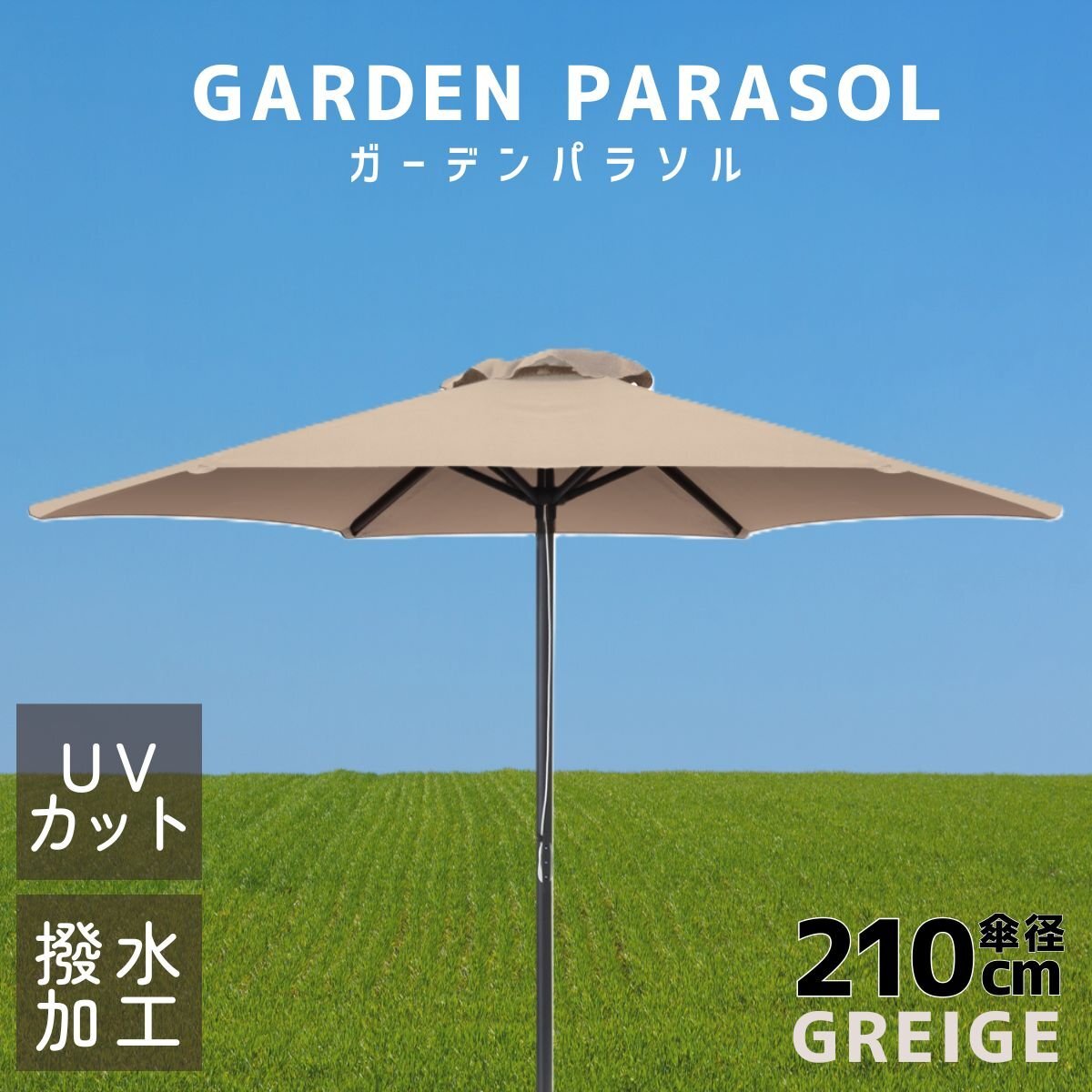 - 【グレージュ 210cm】パラソル ガーデン 大型 日よけ 回転 おしゃれ 撥水 ベンチレーション UVカット 折りたたみ ビーチパラソル シェード