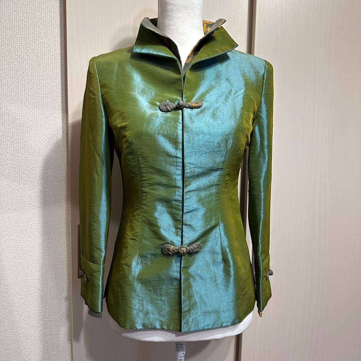 - 綿夢亭 チャイナシャツ グリーン サイズS ak547