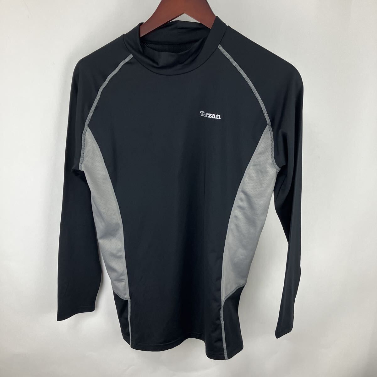 - Tarzan ターザン ブラック ハイネック 長袖 メンズ 男性向け グレー ワンポイント スポーツウェア 速乾生地 通気性 Lサイズ