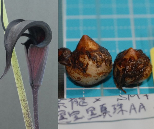 > ウラシマソウ SRxKK 青軸漆黒花 『紫龍 × 黒宝・黒真珠AA -(24 (1))』 SM球+S球 (2) 2球 【選別】(浦島草、山野草、テンナンショウ)