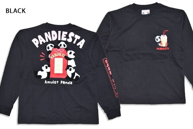 - お守りパンダロングTシャツ◆PANDIESTA JAPAN ブラック Lサイズ 595964 パンディエスタジャパン 刺繍 長袖