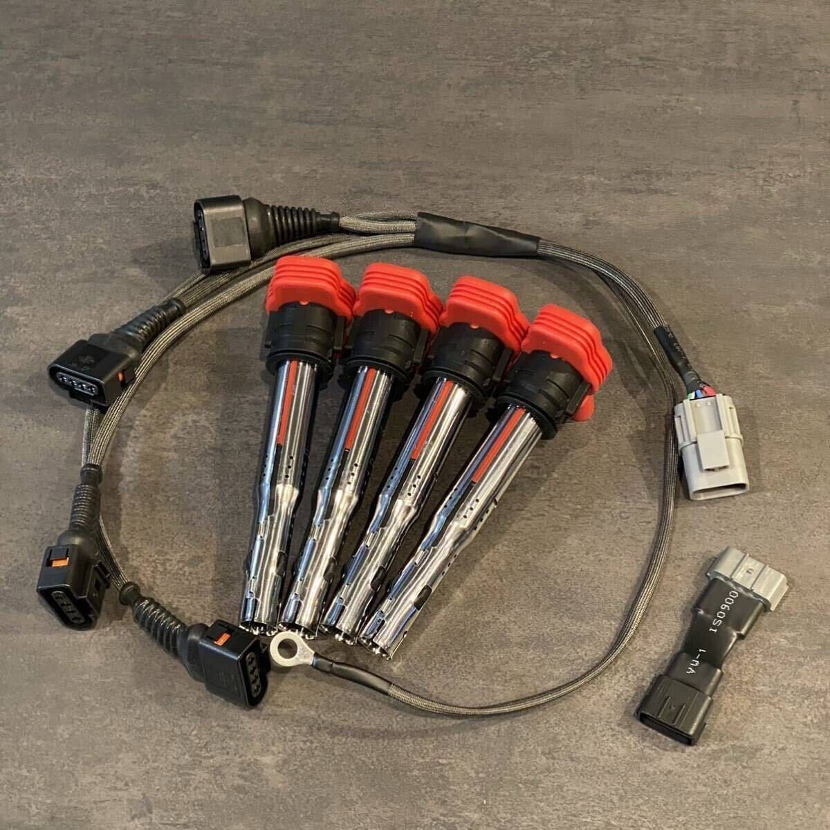 - 【新品 保証付】SR20DET S13 S14 R8コイル 流用キット イグニッションコイル 強化ハーネス パワトラレス 高性能 アウディ シルビア 180sx