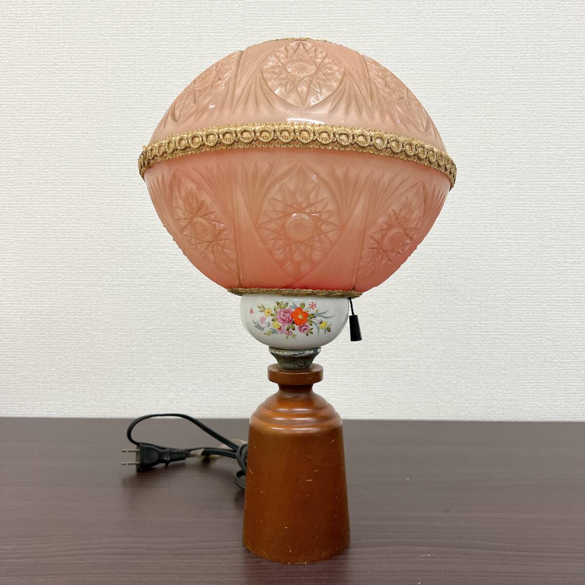 > [R13] National ナショナル 白熱灯照明器具 テーブルランプ LT635 ピンクガラスシェード レトロ アンティーク 通電確認済み 中古