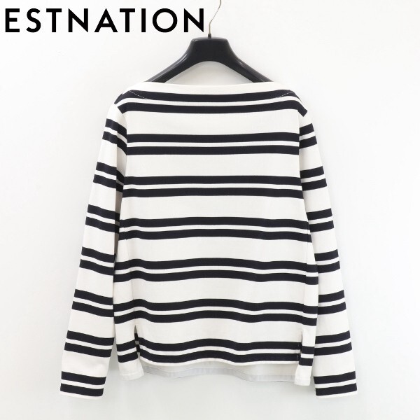 > 【KA352】美品◆ESTNATION エストネーション サイドスリット ボーダー柄 コットン ボートネック トップス プルオーバー 38