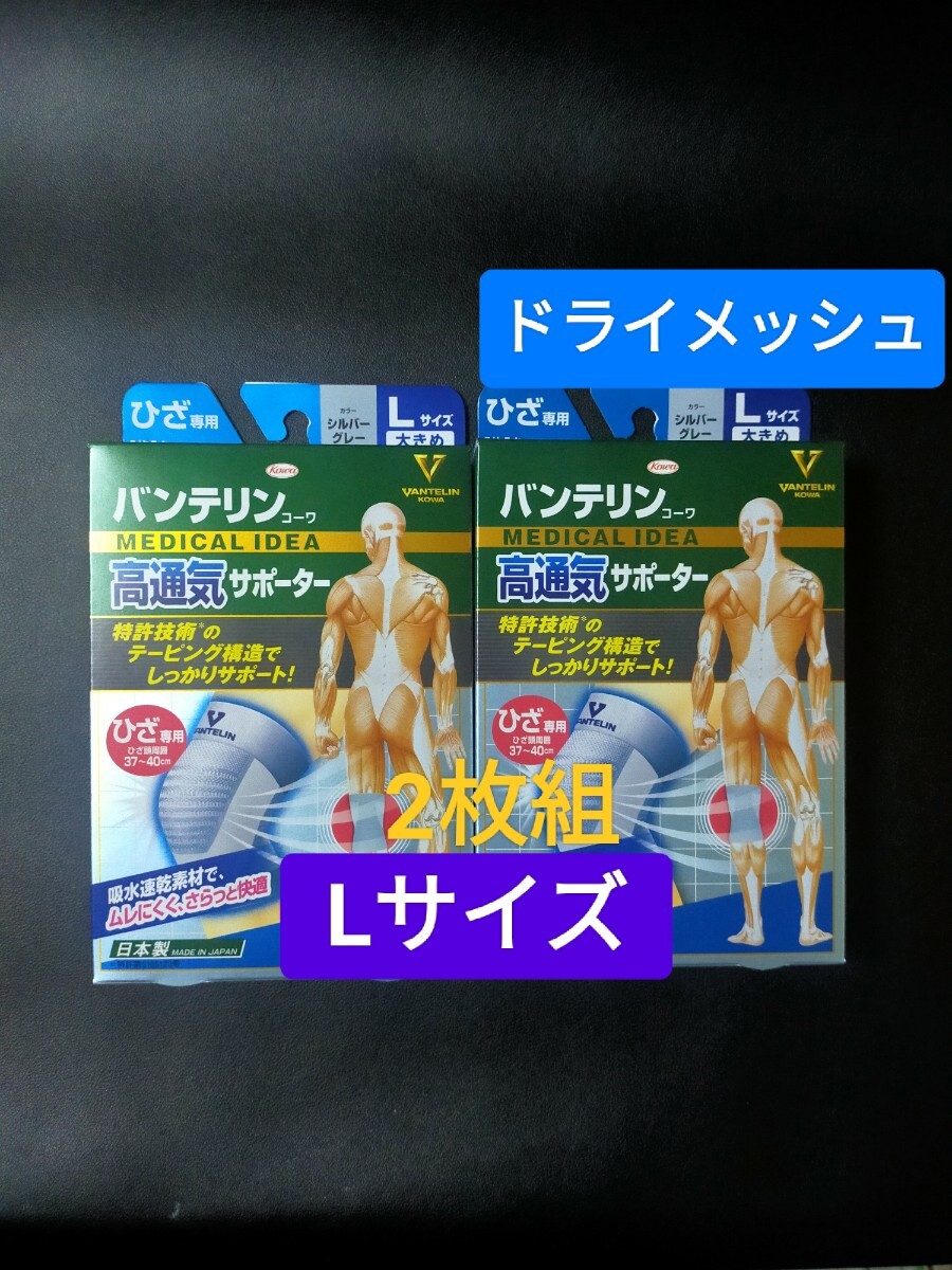 - Lサイズ★バンテリンサポーター 膝サポーター 2枚組 バンテリンコーワ サポーター ヒザ 【高通気タイプ 】ひざ専用 大きめ/シルバーグレー