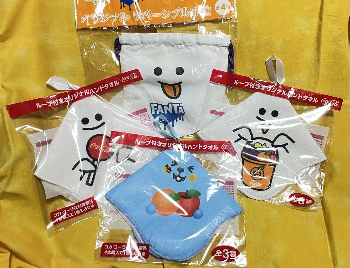 > ■ハロウィン■送料込◆即決◆非売品◆コカ・コーラ Qoo【リバーシブル巾着 1種 & ループ付きハンドタオル 3種】新品未開封品◆おばけ