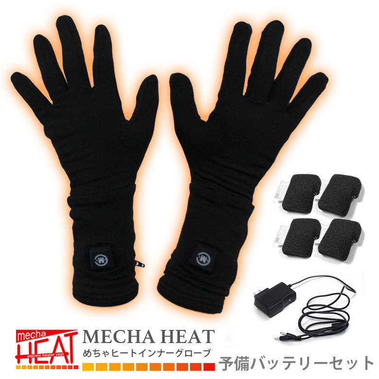 - 【予約11/12頃出荷】手袋 グローブ 電熱 インナーグローブ バッテリー4個セット(Sサイズ) 日本製発熱繊維使用 6ヵ月製品保証付