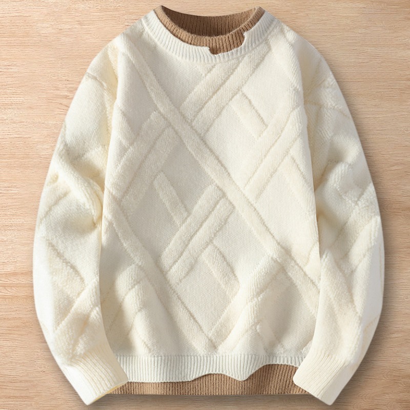 - Y226-2XLホワイト 新品DCKMANY ウール混 ニット セーター 立体編みデザイン レイヤード 暖かい 長袖 防寒 冬 メンズ プルオーバー トップス