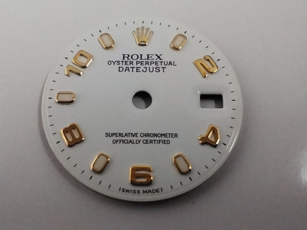 > 【時計王】ROLEX 純正文字盤 79173等用 白文字盤 レディース イエローゴールドアプライドインデックス 夜光ルミノヴァ 税別 送料別 パーツ