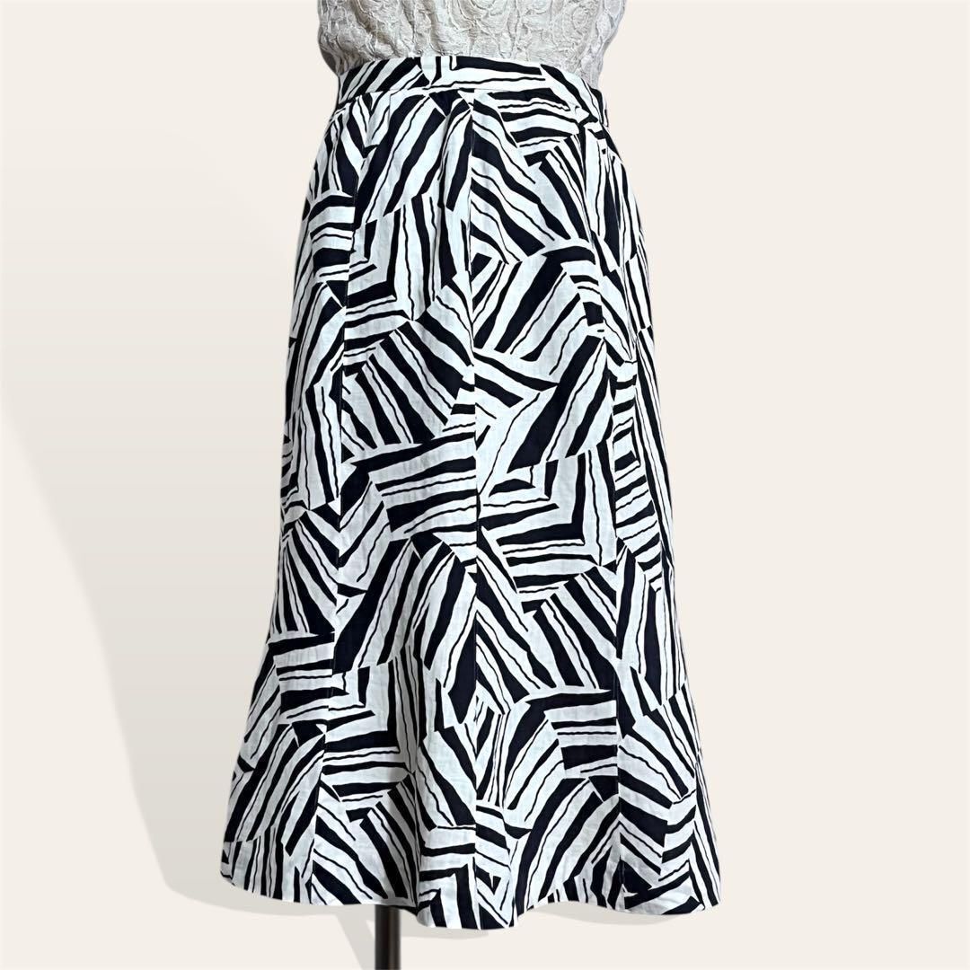 - 大人気 リネン 麻素材 ゼブラ 幾何学柄 切替パッチワーク風 ロングフレアスカート 11・L レディース 2252