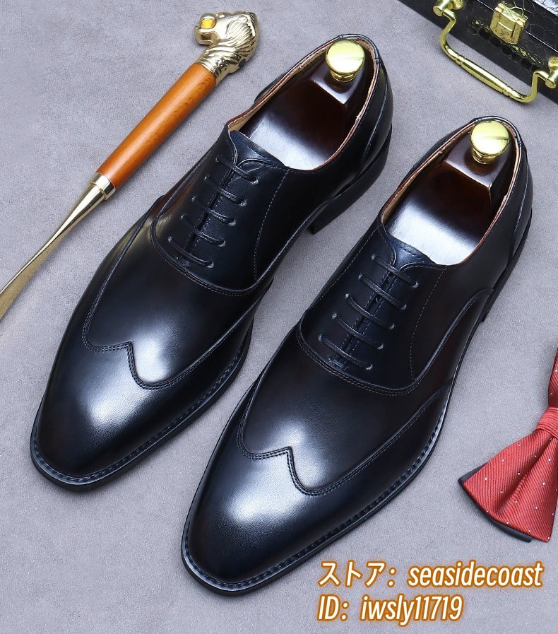 > 入手困難◆ビジネスシューズ メンズ 本革 レザーシューズ 職人手作り 彫り イギリス風 紳士靴 高級牛革 革靴 結婚式 宴会 ブラック 27.0cm