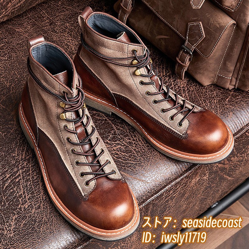 > 最高級*定価10万 メンズ ブーツ 正規品 ワークブーツ 職人手作り エンジニアブーツ ミリタリー マーティンブーツ 切替 レザーブーツ 25.0cm