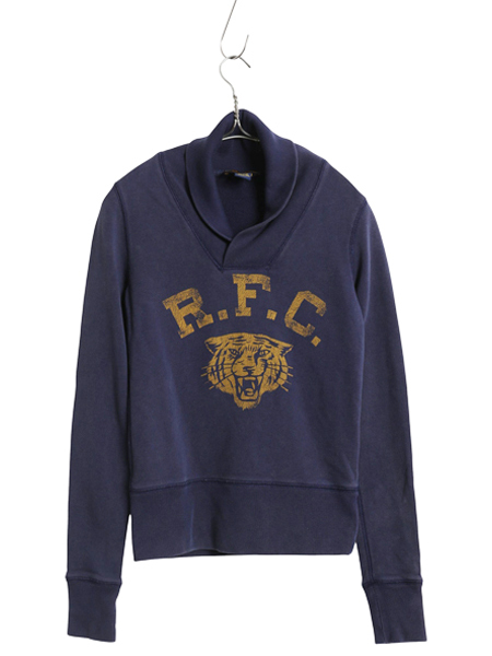 > ラグビー ラルフローレン ショールカラー 2段 プリント スウェット レディース XS トレーナー 裏起毛 なし ヴィンテージ モデル タイガー