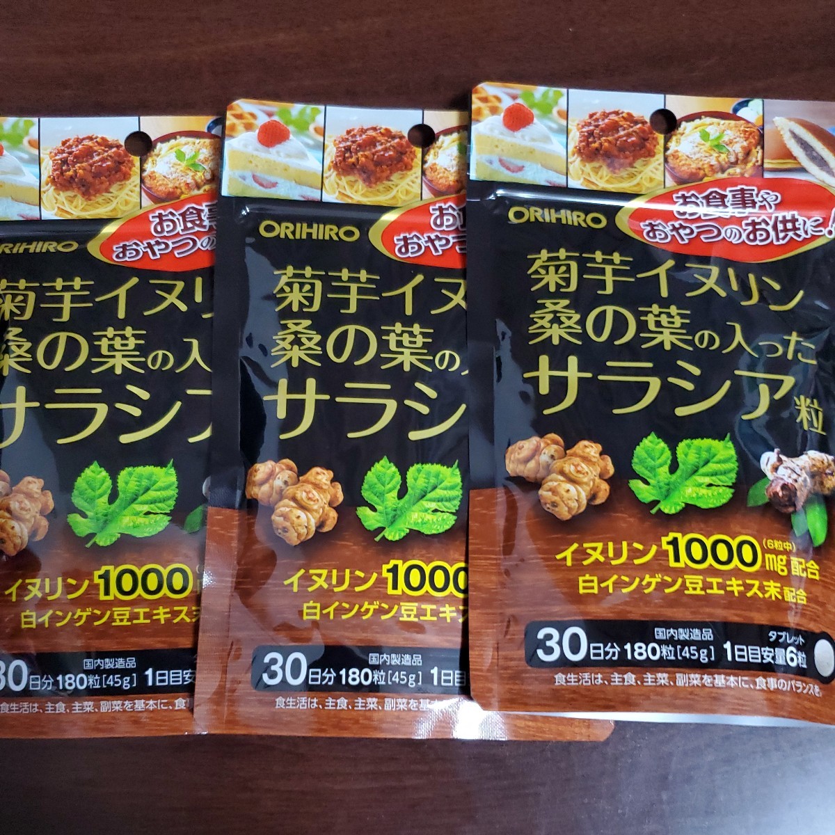 - オリヒロ/サプリ菊芋イヌリン桑の葉の入ったサラシア粒3袋賞味期限2027-03〜