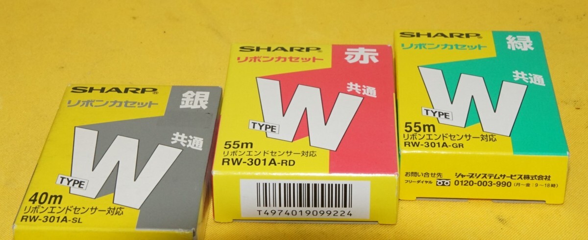 - A&P SHARPのリボンカートリッジ、RW301A/SIL/RD/GR、三色の未使用品。商品の定価は¥4500;(現状渡)